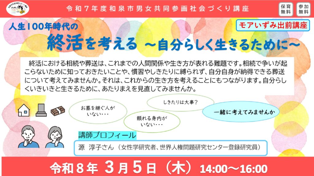 - 2025年6月1日 和泉市男女共同参画推進 講師派遣事業について