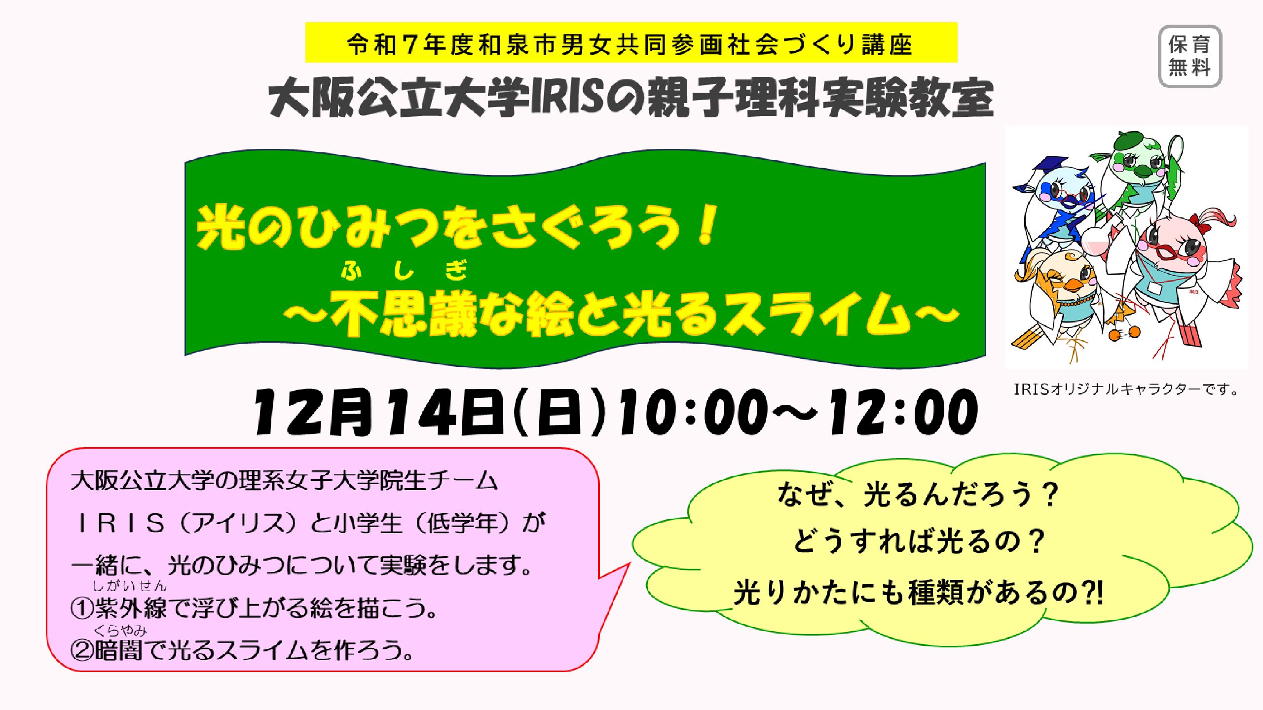 大阪公立大学IRISの親子理科実験教室 光のひみつをさぐろう! ~不思議な絵と光るスライム~