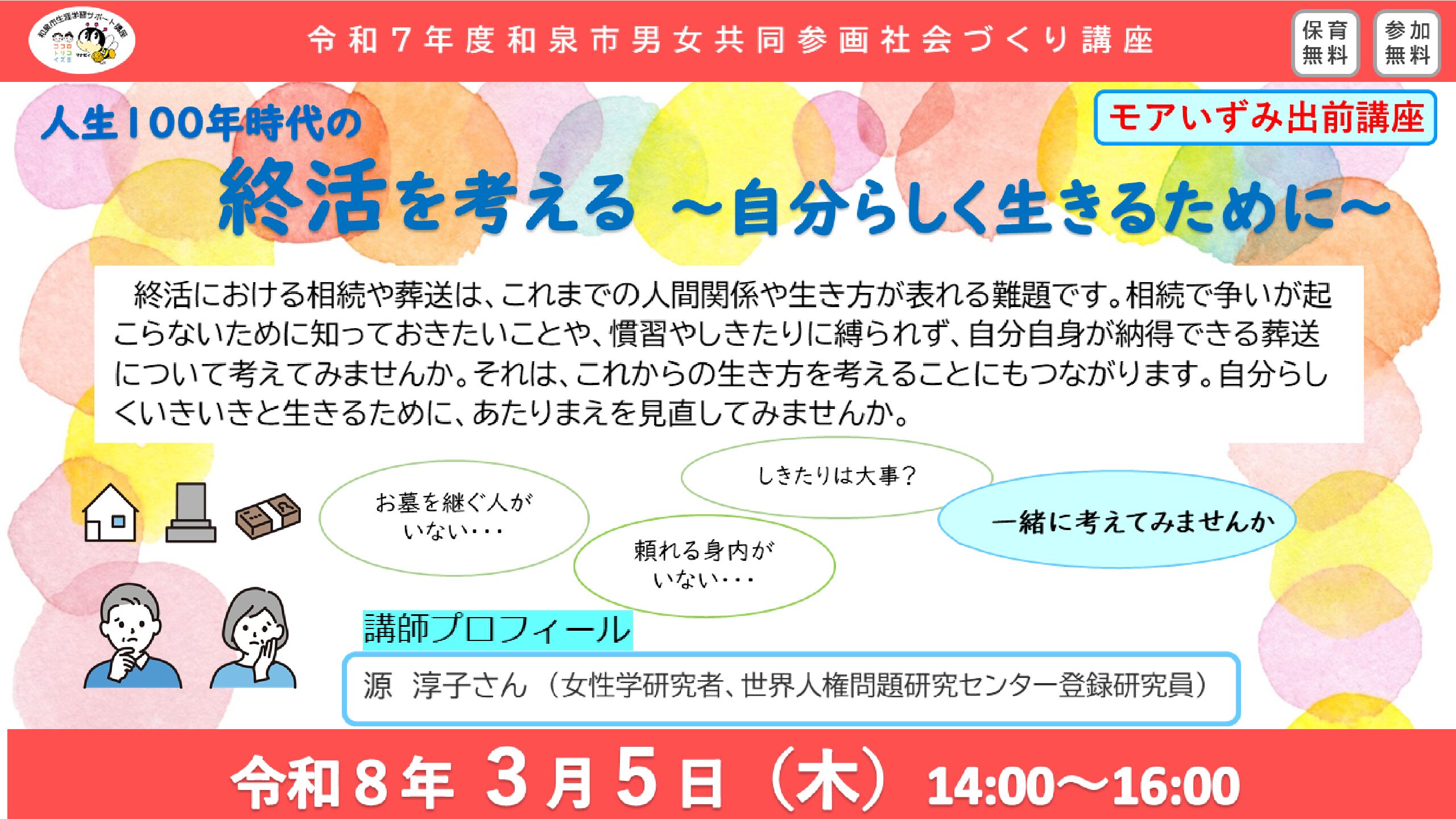 | 講師 | 源 淳子さん(女性学研究者、世界人権問題研究センター登録研究員) |